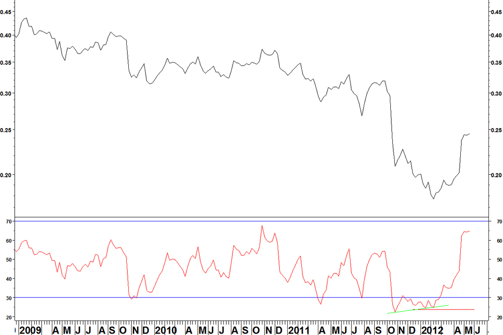 The Agnico Eagle Mines (AEM) v Philadelphia Gold & Silver Index (XAU) trade has made a decent profit and you could low take that profit or run as you see fit. Just because it hasn’t reached weekly overbought yet, doesn’t mean it will.
