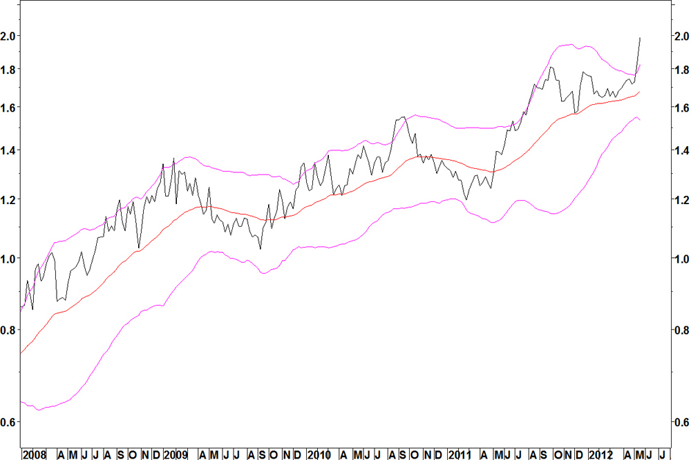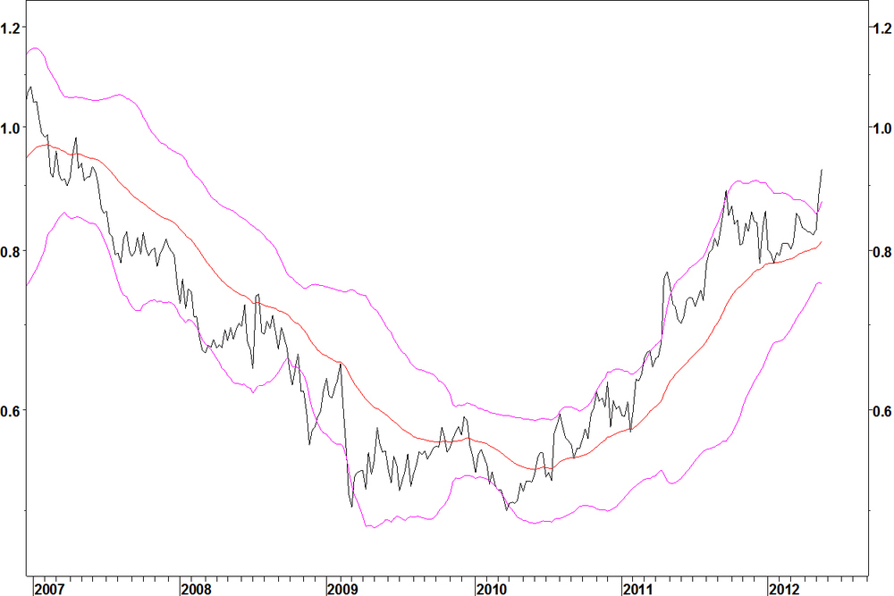 Firstly to update the two positions that are running, they made good progress last week. The Coca-Cola Femsa (KOF) v iShares Mexico (EWW) trade was entered last week. It made good progress.The SPDR Health Care (XLV) v Teva Pharmaceuticals (TEVA) also made good progress last week.