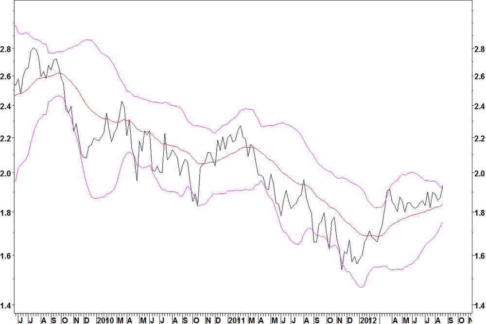 - The ratio formed a base in late 2011, rallied and has consolidated since late March