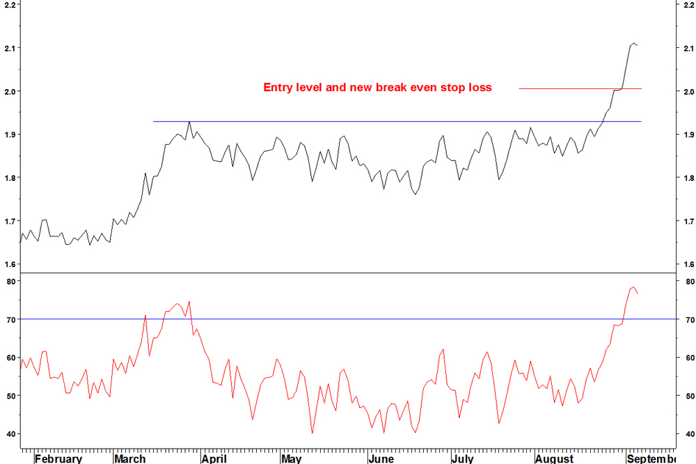 Remember though, this is a medium term position (weeks to months). Whilst there can always be pullbacks, the best examples of these trades do not pull back far or for very long.
