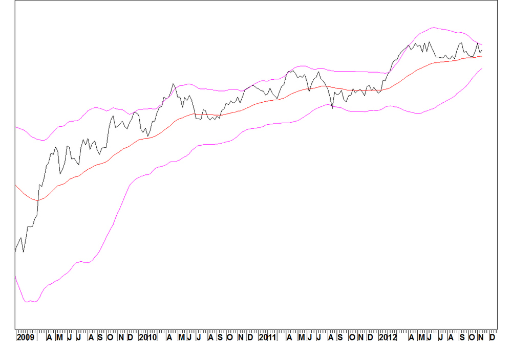 I ran a Metastock scan on 182 ETFs, US sector and market indices and Japanese ADRs for series that, when charted as a pair against NTT, have contracted Bollinger Bands. The results showed 67 pairs to have (now or in the last five weeks), Bollinger Bands at their tightest for three years.