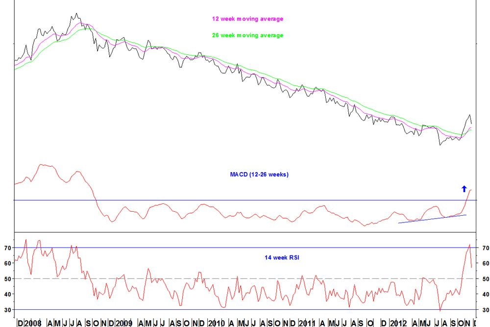 - The RSI never got far above 50 or for very long during the downtrend but now it has gone decisively above 50