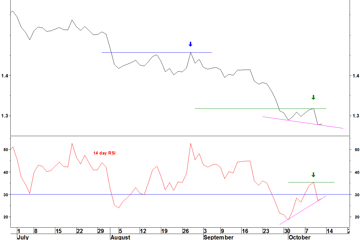 - This has continued lower but there is still a slight RSI divergence against the April low