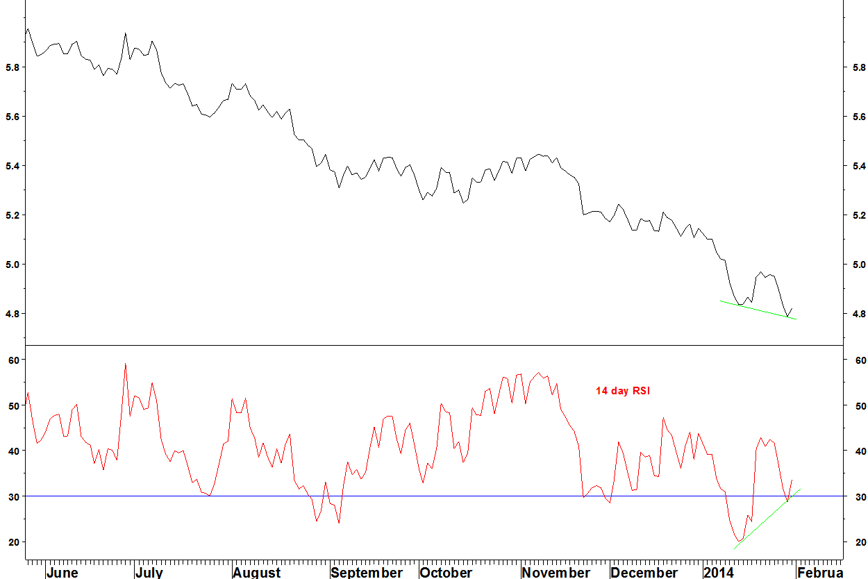 - The divergence is a better set up that A and the same could happen now – a multi week pull back towards rising moving averages