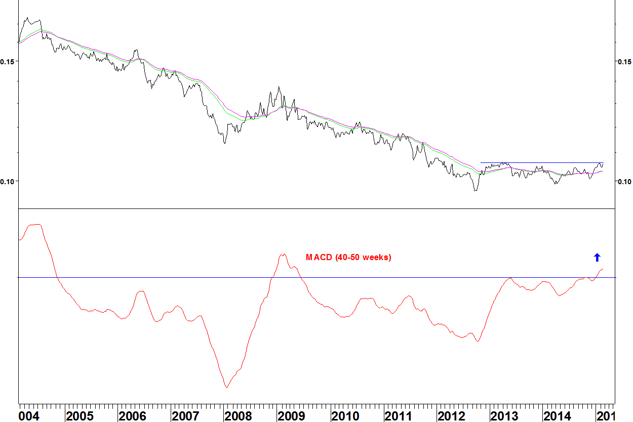 - The ratio is testing the top of a base that has formed since late 2012