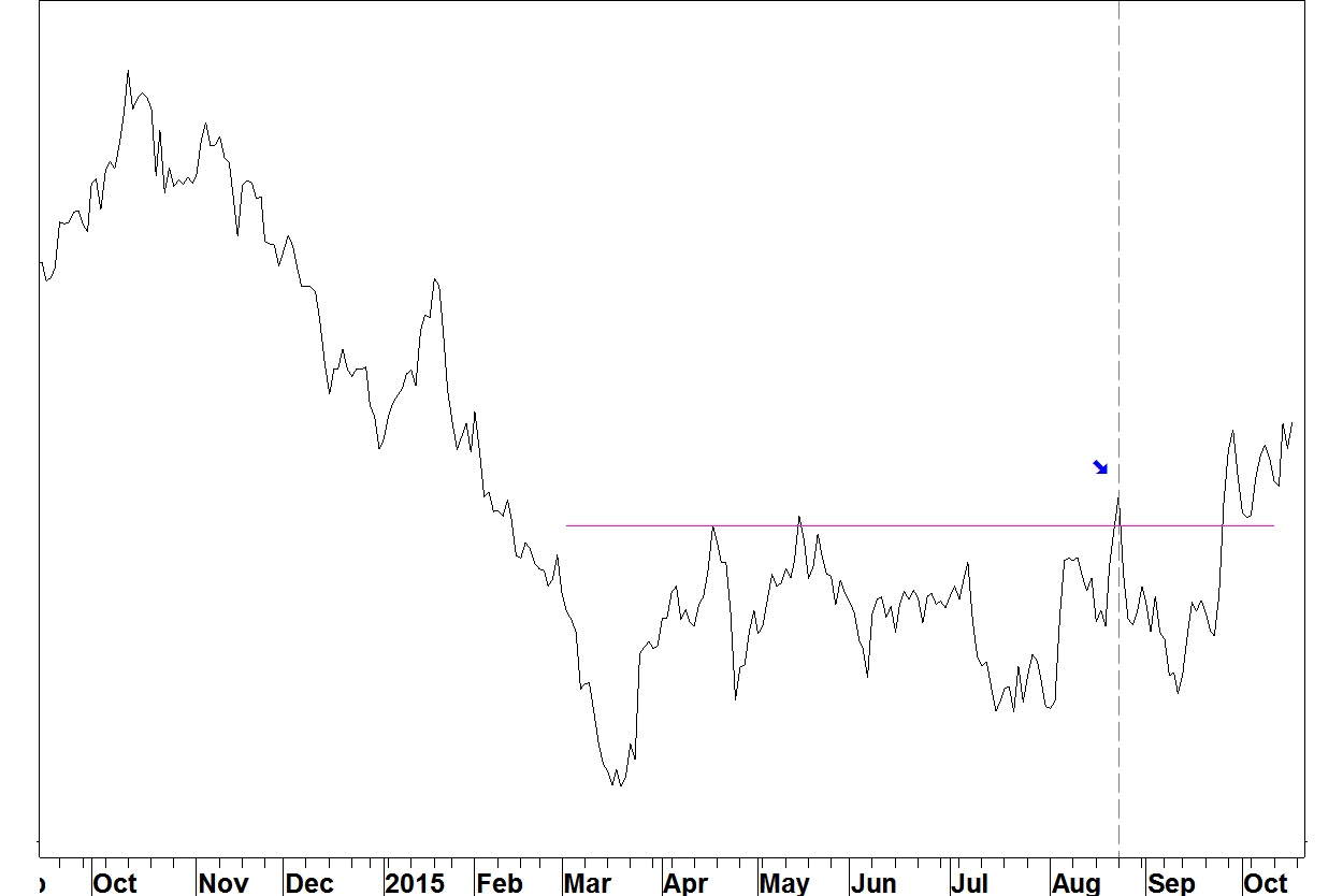 - The ratio has broken above the base and is above the 24 August peak